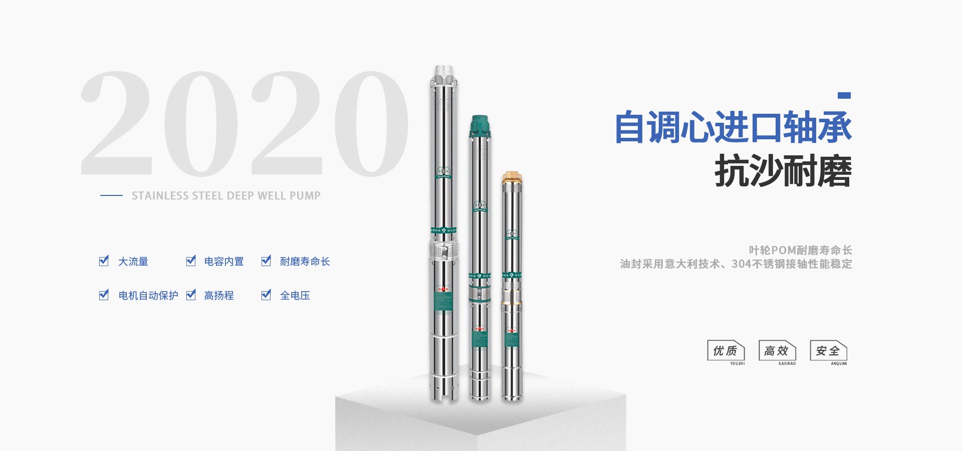 不僅僅是泵,更是流動的科技。十多年來,本公司堅持走:以質量求生存以科技創(chuàng)新求發(fā)展,重合同守信用的道路,生產經營得到迅速發(fā)展。更希望以后不管從發(fā)達城市到新農村,從工業(yè)制造到尖端科技產業(yè)都隨處可見創(chuàng)江井泵的身影,創(chuàng)江深井泵已成為干萬用戶心目中優(yōu)質和信心的保證我們將以優(yōu)質的產品和最完善的售后服務來真誠與各界朋友開展廣泛的合作,共同創(chuàng)造一個美好的未來!